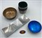 Lotto composto da un vassoio, due ciotole, un vaso e una spilla in metallo smal