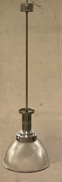 Lampada a sospensione in acciaio e vetro stampato. (h cm 103) (lievi difetti)