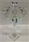 Candeliere in cristallo a cinque fiamme. Produzione recente. Etichetta adesiva base. (h cm 51) (lievi difetti)