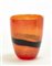 Vaso in vetro trasparente arancio con decoro a fascia nera. Produzione recente.