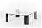 Tavolino da salotto con piano in cristallo, basi in metallo verniciato nero. It