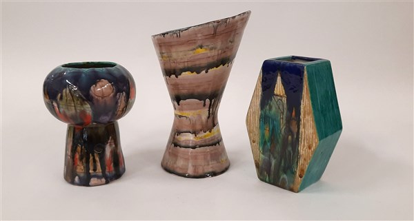 Elio Schiavon Lotto composto da tre vasi in ceramica smaltata in policromia sott