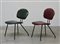 Lotto composto da due sedie con struttura in tubolare metallico verniciato nero, seduta e schienale imbottiti e rivestiti in similpelle bordeaux e verde. Italia, anni '60. (gravi difetti)