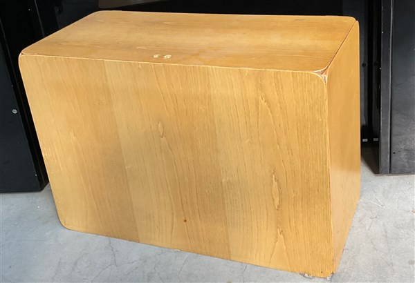 Cassapanca. Anni '80. Legno chiaro massello e impiallacciato. (cm 85x57x38) (lievi difetti)