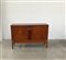 Credenza a due ante in legno massello e impiallacciato a quattro cassetti. Ital