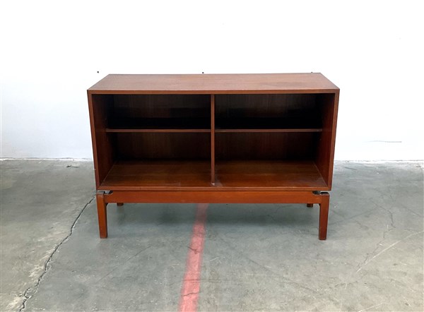 Credenza in legno massello e impiallaciato con due vani a giorno e ripiani. Ita