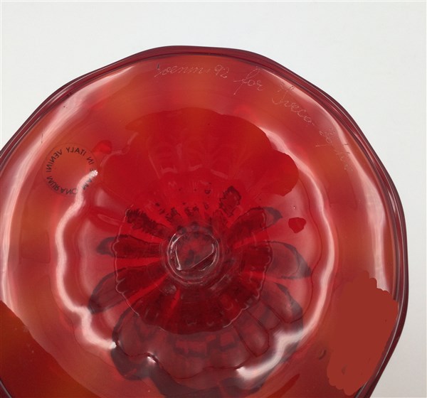 Venini Vaso. Murano, 1992. Vetro soffiato trasparente rosso. Firmato, datato e n