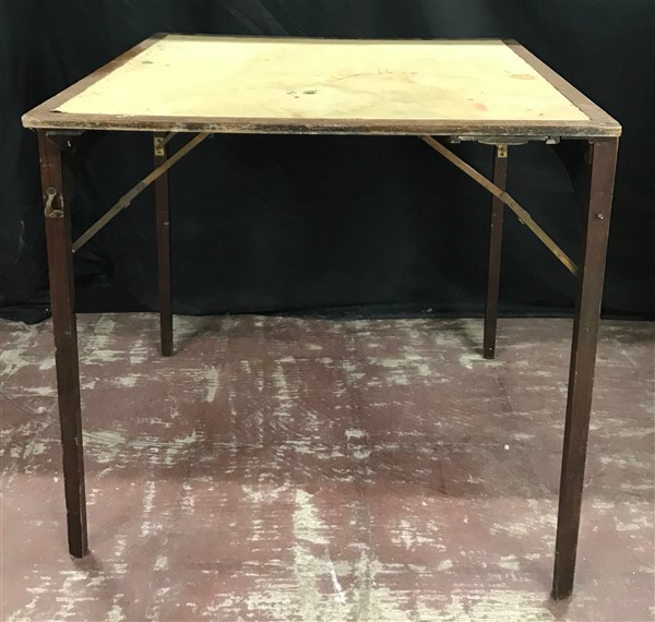 Lotto composto da un tavolo da centro in legno con gambe squadrate ed un tavolino da gioco pieghevole (gravi difetti e mancanze)