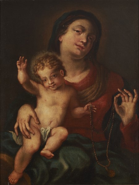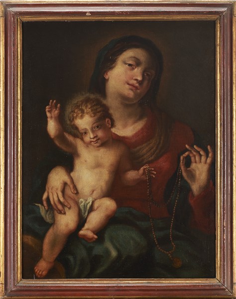 Lotto 1603 | Ignoto del secolo XVIII. Madonna con Bambino, olio su tela (cm 56x74) in cornic