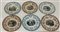 Gruppo di sei piatti del secolo XIX in ceramica decorati con decalcomanie raffiguranti scene con i mesi dell'anno (d cm 20) (difetti)