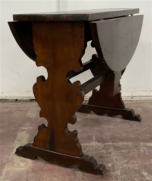 Lotto 1629 | Tavolino tondo ad alette in legno con sostegni sagomati (aperto cm 79x62x78) (d