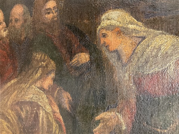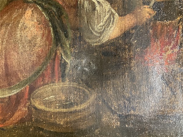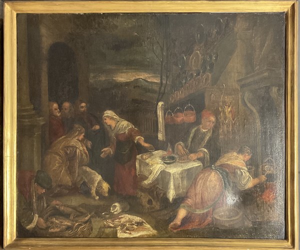 Lotto 1656 | Copia da Bassano, Cristo in casa di Marta, Maria e Lazzaro, olio su tela (cm 83