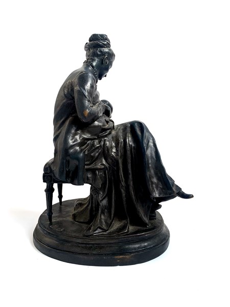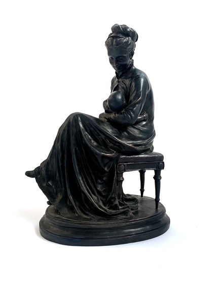Ignoto francese del secolo XIX "Maternità" scultura in bronzo (h. cm 28.5) Sigl