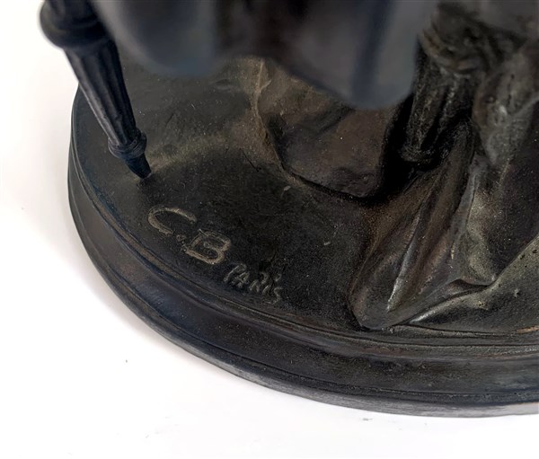 Ignoto francese del secolo XIX "Maternità" scultura in bronzo (h. cm 28.5) Siglata CB e locata Paris a sinistra