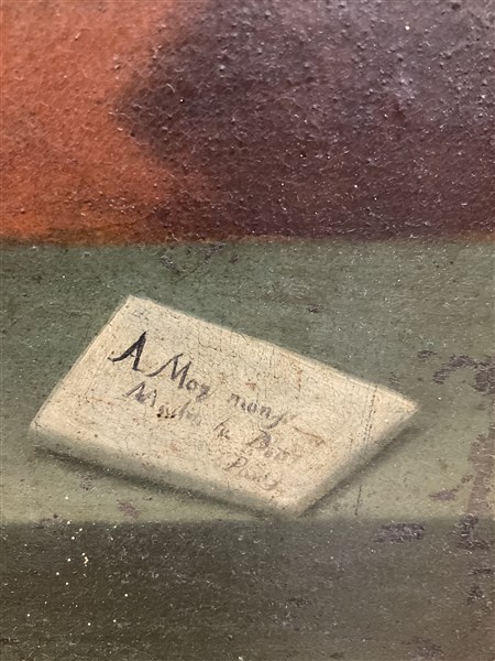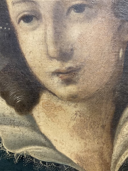 Ignoto , antico dipinto ad olio su tela raffigurante Dama con fiore (cm 82,5x64
