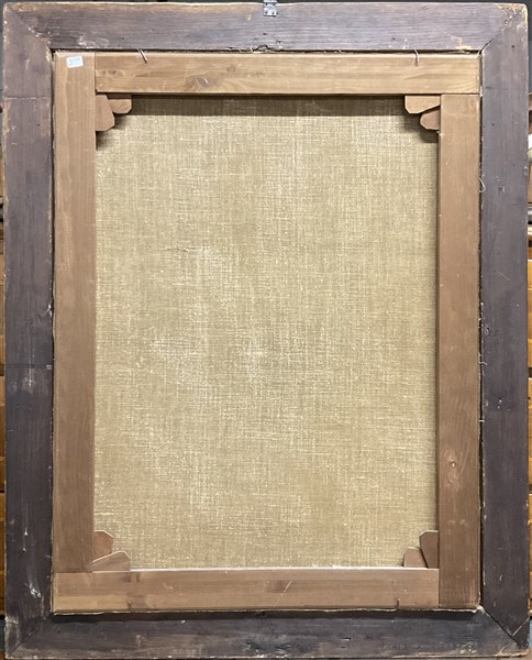 Ignoto , antico dipinto ad olio su tela raffigurante Dama con fiore (cm 82,5x64) in cornice in legno dorato