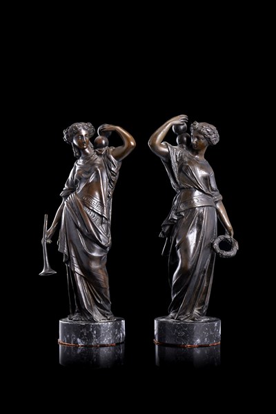 Lotto 1701 | Auguste Moreau "Figure classiche" coppia di sculture in bronzo (h. cm 28) poggia