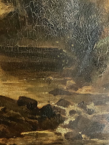 Ignoto "Paesaggio" olio su metallo (cm 44x26,5) in cornice in legno intagliato