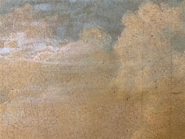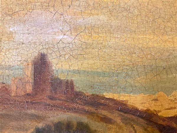 Ignoto, dipinto raffigurante figure in un paesaggio, olio su tela (cm 88x120) i
