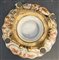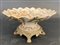 Alzata in ceramica decorata a raffaellesche su finta craquelé, montata su base in gesso terminante a piedi ferini (d. cm 26x13,5) (difetti)