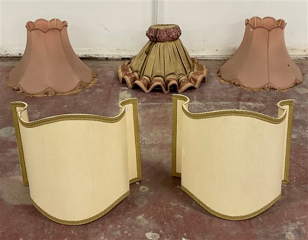 Lotto 1751 | Lotto di cinque paralumi in tessuto di fatture e dimensioni differenti (lievi d
