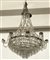 Lampadario a cesto a otto luci con struttura in metallo e pendenti in vetro sfaccettato (h. cm 95) (difetti)