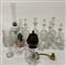 Cartone contenente vasi, bottiglie in vetro, due lampade ad olio e una applique (difetti)