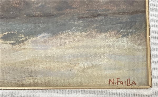 N. Failla "Paesaggio con ciminiere" olio su tela (cm 45.5x55) Firmato in basso a