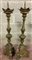 Coppia di candelieri in bronzo con fusto tornito, piedi ferini. Fine secolo XVIII (h cm 72) (difetti)