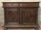 Antica credenza a due cassetti e due ante pannellate, montanti a torciglione, p