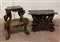 Lotto composto da uno sgabello in legno intagliato e traforato a putti e stemma nobiliare ed una piccola libreria con montanti intagliati ad animali fantastici (difetti)