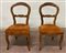 Coppia di sedie in noce con schienale e fasce intagliate a volute. Secolo XIX (