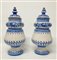Coppia di vasi in ceramica di forma mossa decorati nei toni del blu a fiori e v