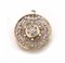 realizzata come un medaglione circolare traforato a volute fogliacee decorate in piccoli brillanti, al centro un motivo traforato a stella analogamente decorato, corredato di catena a maglia sottile, g 25