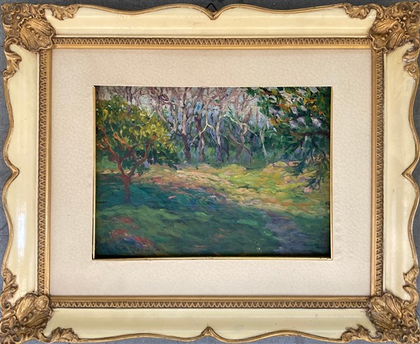 Giuseppe Marletta "Paesaggio boschivo" olio su tavola (cm 16x22.5) Firmato in ba