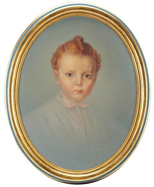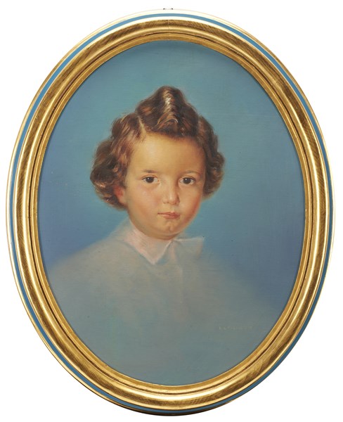 Elpidio B. "Fanciulli" Coppia di ritratti ad olio su compensato ovale (cm 52x40) Firmati in basso a destra. In cornici laccate e dorate (difetti)