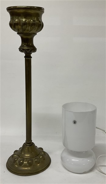 Lotto composto da un posacenere da terra in metallo dorato ed una lampada in ve