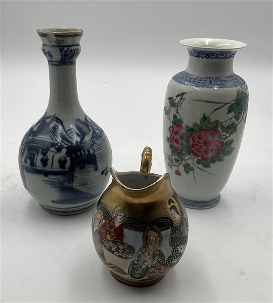 Lotto 2674 | Lotto composto da un vaso cinese, una bottiglia coreana e una lattiera Satsuma,