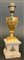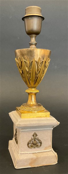 Base per lampada in bronzo dorato decorata a palmette con base in velluto decorato da fregi in metallo (h. cm 37) (difetti)