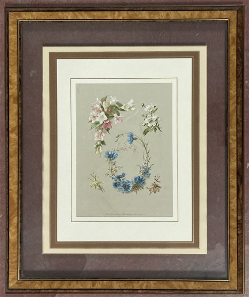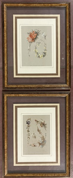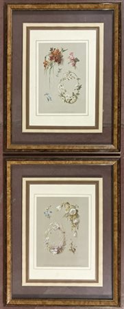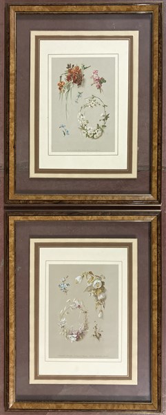 Gruppo di cinque cromolitografie raffiguranti fiori (cm 46x36)