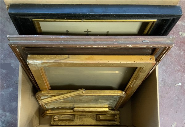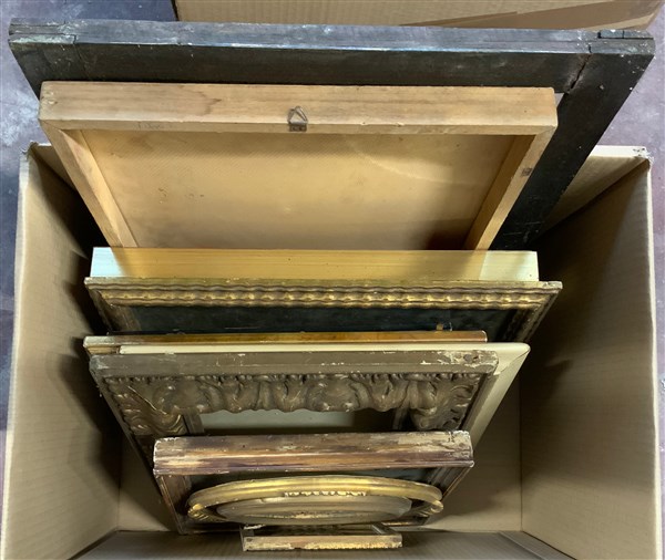 Lotto di due cartoni contenenti numerose cornici di epoche e dimensioni differe