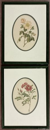 Lotto composto da quattro stampe colorate raffiguranti fiori in cornici (misure