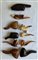 Lotto composto da cinque pipe in schiuma di mare intagliata e materiali differenti con soggetti diversi tra cui profili e volatili. In custodie (difetti)