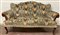 Divano ad orecchioni in noce con schienale sagomato, braccioli terminanti a ric