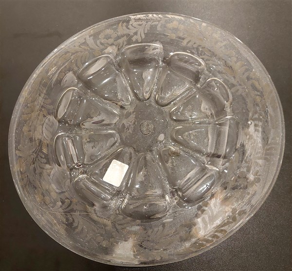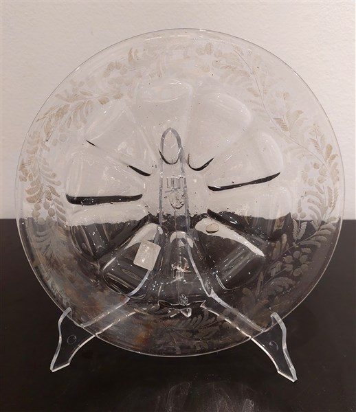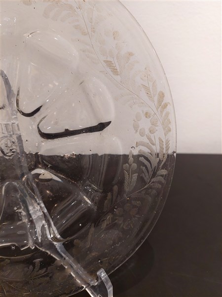 Piatto in vetro decorato nei bordi a fiori e foglie (d. cm 26)