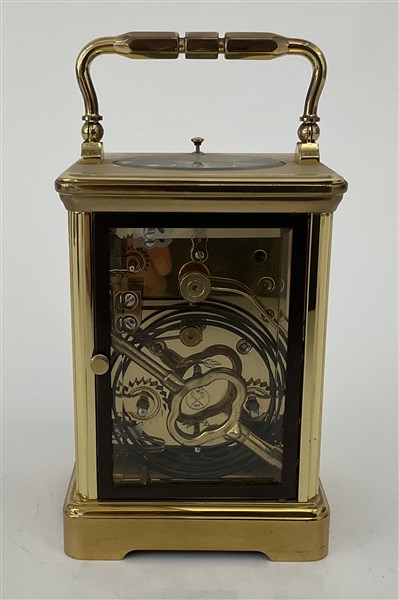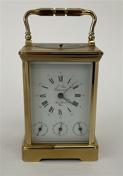 JAEGER LECOULTRE orologio da scrivania in ottone. Quadrante bianco a indici applicati, apertura per la data. Secolo XX (difetti)