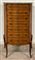 Settimanale di forma mossa in legno lastronato e filettato, piano in marmo e gu