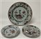Compagnia delle Indie, lotto di tre piatti in porcellana con decori a motivi na