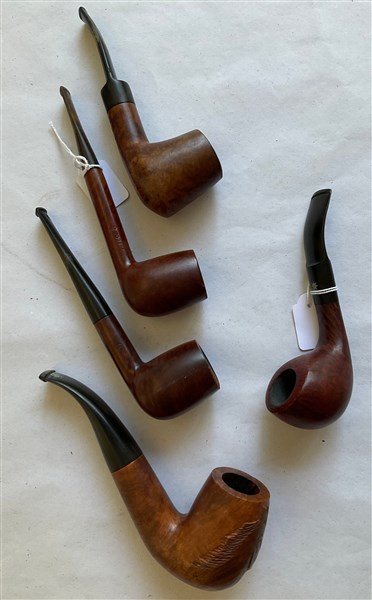 Lotto 2867 | Lotto composto da cinque pipe in legno intagliato con bocchini in ebanite (dife