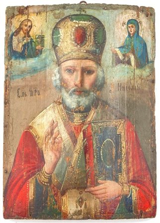 Scuola russa, sec XVIII. Icona raffigurante San Nicola (cm 24,5x35,5x2,5) (dife
